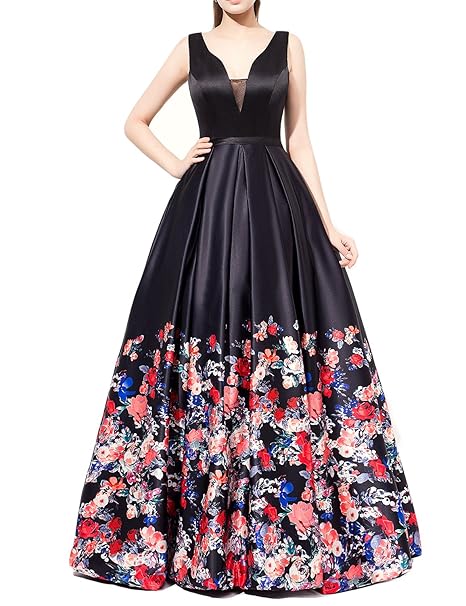 Vanial Beautiful Floral Print Prom Dress Long Formal Evening Gowns V002