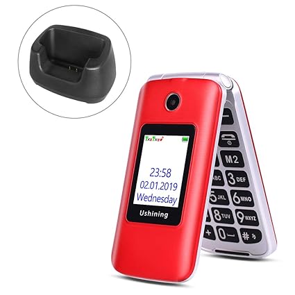Ushining 3g Unlocked Senior Flip Phone Dual Sim Card Fm Radio Gsm Unlocked Flip Phone 2 8 Lcd And Large Keypad With Charging Cradle Red